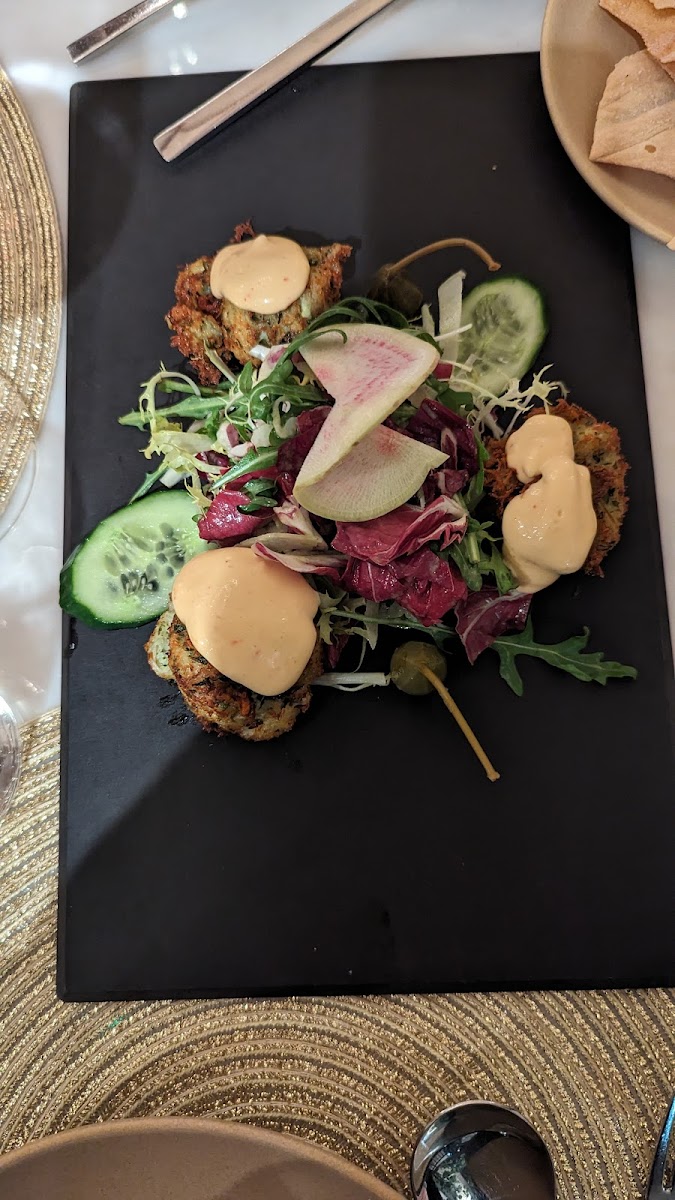 What a wonderful evening we had here! First I have to say I love the way this place is laid out. There’s lots of private corners and beautiful art and high ceilings. It’s really an amazing find in a strip mall! The service was absolutely top notch. Then the food! everything was so delicious. My salmon was perfectly cooked and beautifully presented with all kinds of interesting flavors. The beet salad was both beautiful and delicious. Afterward I had an excellent tiramisu beautifully presented topped off with a fantastic European style decaf cappuccino. I also have to say the owner is a very nice man who was very kind to a member of our group who wasn’t feeling well. Everything was primo and bellisimo!